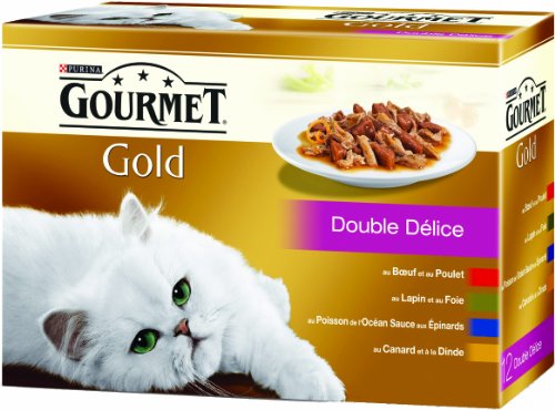 Gourmet Gold Double Delicacies Cat Food contains tender flakes and chunks of succulent meat in a delicious sauce.This 12 x 85g multipack comes with various flavours