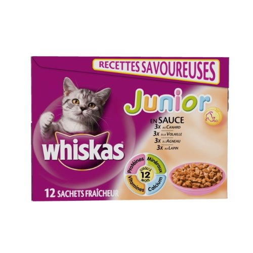 48 sachets de 85 grammes soit 4.08kg. Lot de 6 - WHISKAS Mijoté en sauce 400GX4. WHISKAS Junior terrines pour chaton 4 x 400 g.