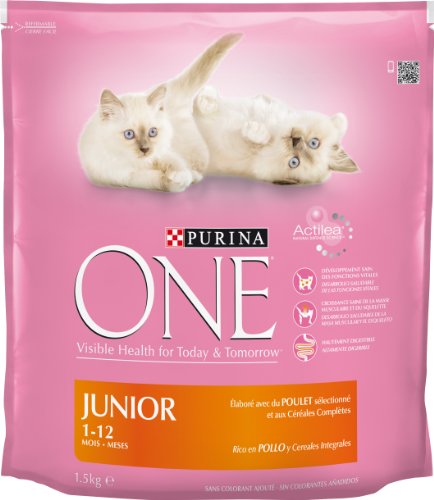 Junior: croquettes pour Pour tout achat de 6 x 0,8/1,5 kg de croquettes pour chat Purina One, bénéficiez d'un prix spécial ! - poulet, céréales (6 x 1,5 kg)