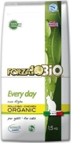 Alimentation bio et naturelle pour chat Forza10 sans colorants, sans additifs, sans conservateurs. Croquettes bio pour chat poulet et algues Forza10. Les croquettes bio pour chat Forza10 Bio poulet et algues sont un aliment monoprotéique, certifié bio et formulé selon les standards rigoureux de l'agriculture biologique. Les croquettes bio pour chat Forza10 Bio se composent de matières premières de grande qualité. Les croquettes bio pour chat Forza10 Bio sont sont enrichies en algues biologiques aux propriétés bénéfiques reconnues. Ces croquettes bio pour chat garantissent un excellent apport d'éléments nutritifs et maitiennent votre chat en parfaite santé et forme physique. Grâce à leur formulation biologique spécifique, les croquettes bio pour chat Forza10 Bio sont également indiquées pour les chats présentant une hypersensibilité à la présence de résidus chimiques industriels dans les céréales et dans la viande. Toutes ces caractéristiques font des croquettes bio pour chat Forza10 Bio un aliment particulièrement sain, nourrissant, très digeste et très appétissant, riche en acide gras oméga-3 et 6. Contrairement aux aliments conventionnels, les croquettes bio pour chat Forza10 bio ne contiennent pas de substances appétantes de synthèse ou d'OGM. Les croquettes bio pour chat Forza10 Bio sont très appétants grâce à l'utilisation de matières premières de très haute qualité et d'extraits naturels